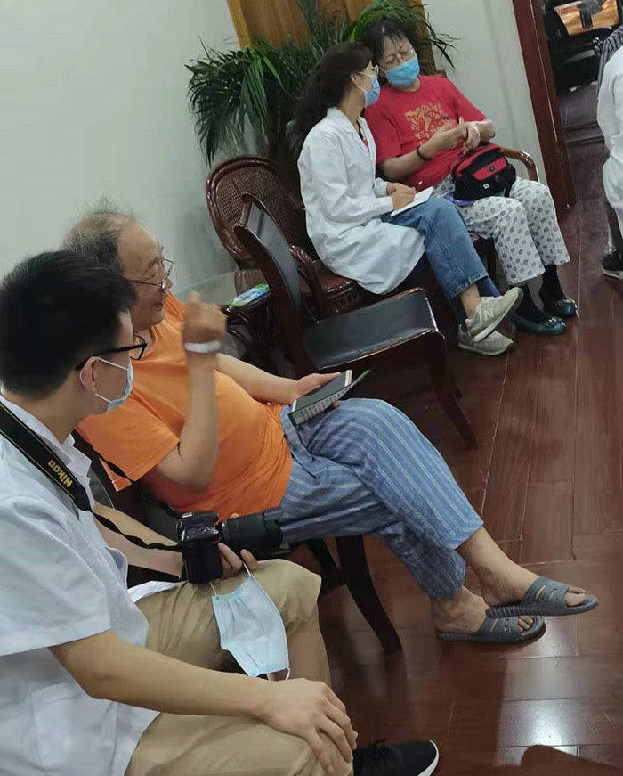 在骨科医院党支部活动室,双方介绍了本单位的党建总体情况,深入交流了各自党建活动的内容、做法和特色之处。双方结合各自专业特色,探讨了潜在的合作意向,如何从语言的角度提高医患沟通效果,如何从计算机技术角度辅助骨科疾病诊断和治疗,如何从运动学角度提高骨科疾病治疗等等;同时,在骨科医院中医堂,气功太极武术老师陈凯华宣讲气功、五擒戏对心理健康、老年健康保健的积极作用,并现场演示,收到现场老年人的热烈欢迎,在场老年人兴趣高涨,纷纷行动模仿起来。大学生志愿心理健康服务队也向老年人发放老年心理健康小册子,并进行知识宣讲、同时开展了心理咨询、心理健康服务活动。