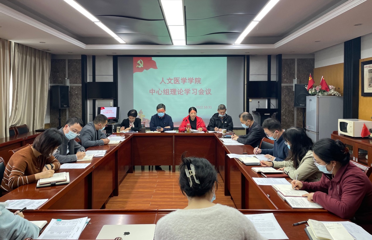 10月31日上午,院党委书记杨秀兰在银河 会议室主持召开专题会议,带领大家重温二十大报告全文、解读新修订的《中国共产党章程》、学习省委书记郑栅洁在全省传达党的二十大精神大会上的讲话。院中心组全体成员参加会议。