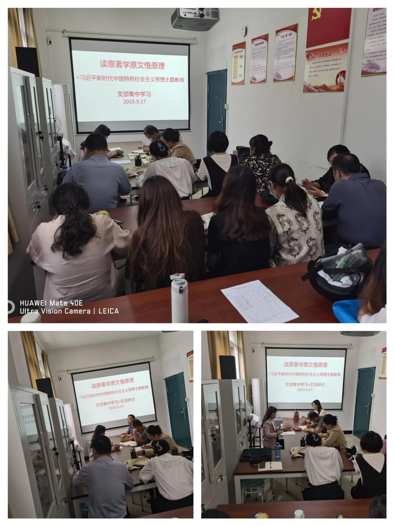 外语党支部开展主题教育集中学习交流研讨 发布时间:2023-05-18 浏览次数:111 2023年5月17日,外语党支部在党员活动室开展主题教育集中学习。支部书记带领党员一起读原著、学原文、悟原理。学习内容与外语系现状与发展有机结合。李莉与刘军两位老师结合自身教学跟大家分享了自己将政治理论学习与教学实践相结合的方法、经验与感悟。通过交流分享,支部为教师间架起互相学习提高课堂教学质量的桥梁。