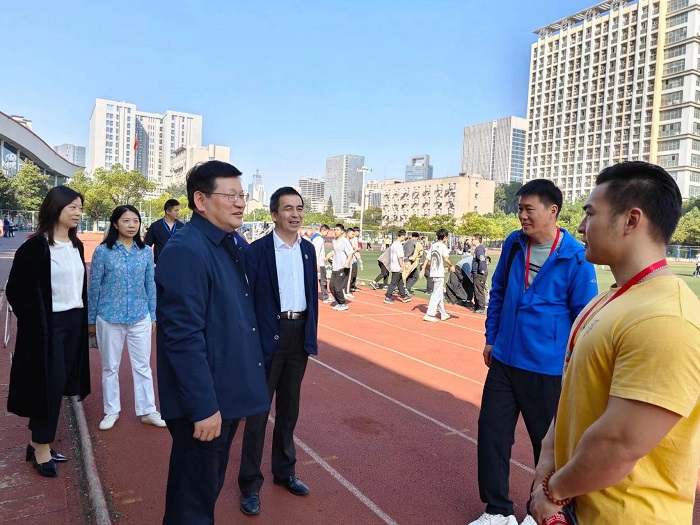 10月16日上午,安徽省教育厅委派专家组到银河 开展安徽省2023年度大学生体质健康抽查工作。校党委书记顾家山、副校长吕雄文现场察看并指导体质测试抽查工作。