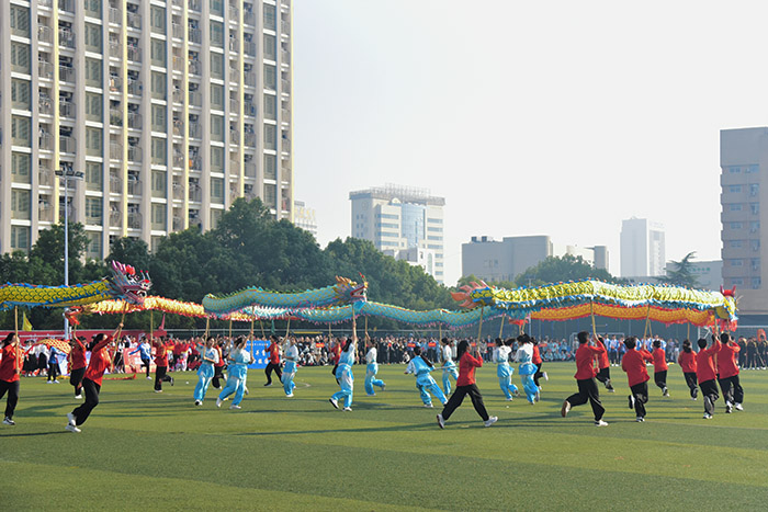 极具传统民俗文化特色的节目《龙腾安医铸华章》,由人文医学银河 运动康复专业全体学生及校舞龙队共同表演,让现场气氛再次到达高潮。时而升腾、时而盘旋、时而翻滚的条条巨龙肆意张扬,多变的舞龙动作展现出学子们的青春朝气和创新求变意识。龙门穿梭,是百年安医发展历程的回溯;龙腾万里,是对安医未来蓬勃发展的真诚祝愿,更表达了全体师生以更快、更高、更强、更团结的精神风貌,奋力推进国内一流高水平医科大学建设的信心和决心。