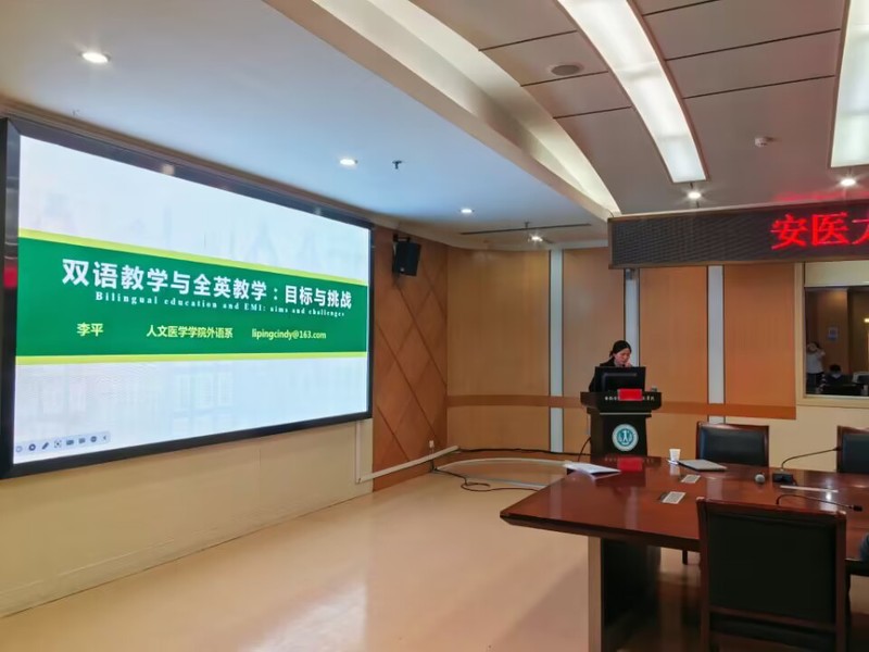 由我系承担的一附院双语教师培训已连续开展十余年,参与培训的学员近400人。培训课程聚焦医学英语语音、医学术语、双语课堂设计、学术英语交流以及跨文化交际策略等内容。长期以来,双语教师培训工作为第一附属医院和校国际教育银河 培养了大批具有较高英语水平和学术交流能力的临床医务工作者,提升了临床医学全英文授课质量,为提升附属医院的国际影响力以及推进银河 留学生医学教育高质量发展做出了重要贡献。