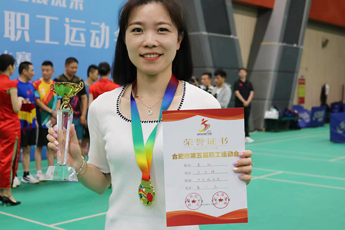 近日,合肥市第五届职工运动会乒乓球比赛在合肥经开区李宁体育园顺利举办,银河 职工袁玎代表银河 被选拔参加经开区总工会中年组女子团体乒乓球比赛,勇夺团体一等奖。