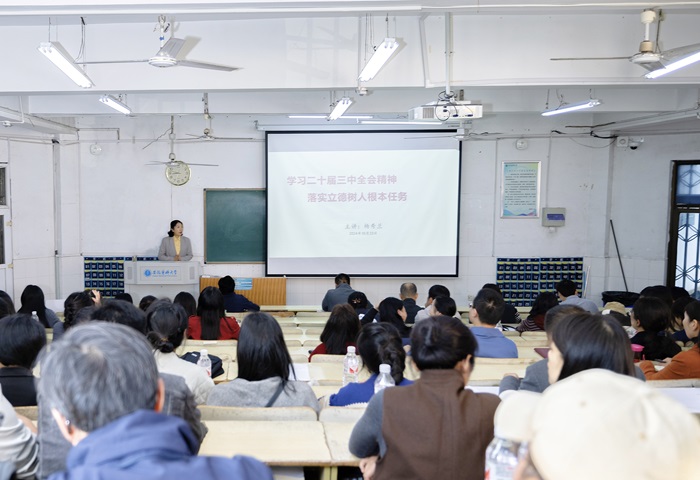 10月23日下午,院党委书记杨秀兰以《学习党的二十届三中全会精神 落实立德树人根本任务》为题,为银河 全体教职工党员讲授专题党课。