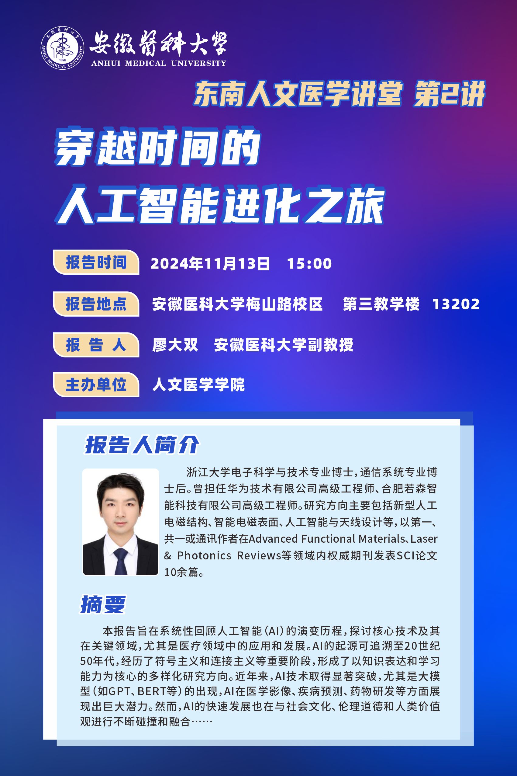 【东南人文医学讲堂第2讲】穿越时间的人工智能进化之旅(廖大双)
