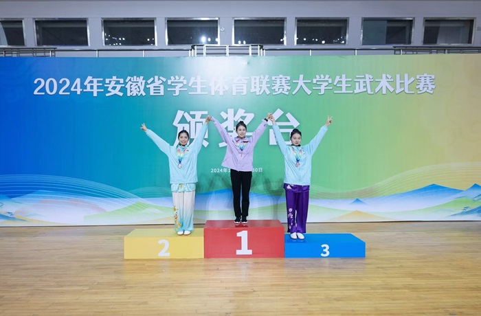 近日,由安徽省教育厅、安徽省体育局主办的2024年安徽省学生体育联赛大学生武术比赛在阜阳师范大学举行。经过激烈角逐,银河 学子斩获2项冠军、1项亚军、1项季军和2项第四名,并荣获“体育道德风尚奖代表队”称号。