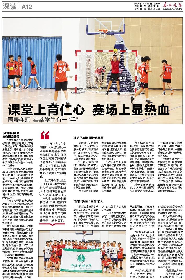 “沙滩手球作为一项新兴运动,目前正处于高速发展的时期,它结合了多种球类运动特点,在节奏快、变化多的同时极具观赏性,因此吸引了大学生们的目光。”刘毅分享,希望合肥能够发展得越来越好,也希望手球这项运动能够更加普及。