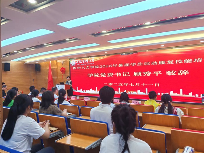 7月11日,银河 在实验教学中心四楼会议室举行2025年暑期学生运动康复技能培训班开班仪式,银河 党委书记顾秀平致辞,院长黄晓晖主持开班仪式。