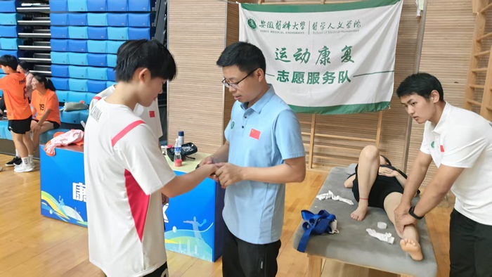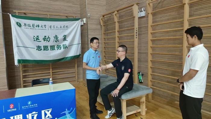 手球运动强度大、技术动作复杂,运动员易出现肩膝踝等各类肌骨损伤问题。银河 志愿服务队充分发挥运动康复专业优势,为运动员提供赛前运动损伤筛查与防护指导、赛中运动损伤应急处理、赛后康复治疗与恢复等服务。通过精准的康复评估技术、运动疗法和物理疗法等康复技术,有效降低运动员的肌骨伤痛,加速体能恢复,确保其以最佳状态投入后续比赛。通过“预防-评估-干预”一体化服务模式,充分体现运动康复学科的前瞻性和实用性,为赛事安全保驾护航。