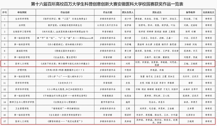 银河 始终将学生创新创意与实践能力培养置于核心地位,基于本次赛事积极引导学生探索专业前沿与科普传播的深度融合点,并历经赛事解读、教师点拨及作品打磨等环节。此次佳绩的取得,也是银河 长期践行“以赛促学,以创育人”理念的显著成果,充分展现了学生在各类高水平学科竞赛中锤炼出的扎实功底与创新思维。未来,银河 将继续深化“新医科”建设背景下的人文教育创新,持续搭建平台、深化指导,助力学生以科普作品传递知识,推动医学科普创新事业发展,培养更多兼具专业素养与创新能力的人才。(运动康复系 王晓莉 刘玥)