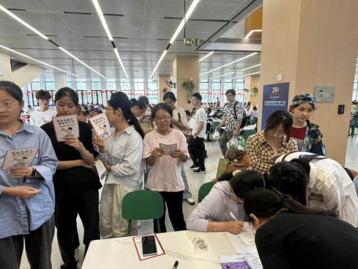 “声”动有趣,师生共赴语言文化之约。9月17日中午,在新医科中心的星瀚餐厅和风华餐厅,成功举办“推广普通话,奋进新征程”的推广活动。志愿者们通过发放宣传单、张贴海报、设立易拉宝展架等形式,营造了推广普通话的浓厚氛围。活动的最大亮点是创新的互动模式。主办人员设置了“绕口令挑战”和“断句比拼”两个游戏环节,将语言学习转化为趣味体验。同学们纷纷排队参加,在妙趣横生的挑战中感受普通话形、音、义的独特魅力,体会汉语的博大精深。热烈的气氛也感染了后勤阿姨和老师,大家踊跃参与其中。他们的加入,让推普活动超越了师生界限,将现场氛围推向高潮,生动诠释了“普通话是连心桥”的深刻内涵。