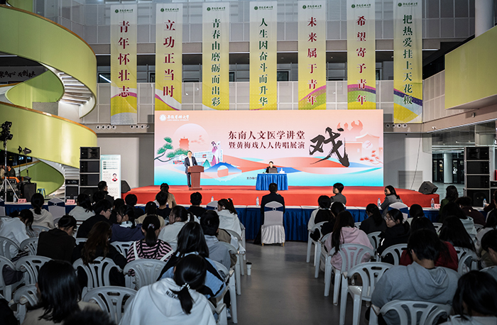 、校团委联合主办的东南人文医学讲堂暨黄梅戏人人传唱展演活动,在学生活动中心一楼举办。校党委常委、副校长文育锋出席活动。