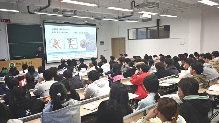 张树林以《从“学问”到“学科”:运动康复身处何方》为题,从世界卫生组织的全球框架及各国政策出发,系统阐述了运动康复在临床应用规范、竞技体育康复技术突破、慢性病运动干预策略、学科课程体系建设以及区域协同发展等五个方面的现状与挑战。整场讲座案例翔实、逻辑清晰,既有理论高度的提炼,又有实践路径的探索,有效拓宽了银河 师生的学术视野,激发大家对运动康复学科未来发展的深入思考。就未来发展,张树林提出推动观念转变、康复计划表格化、促进多学科交叉融合等发展方向,并鼓励青年学子积极投身运动康复事业,勇担时代使命。